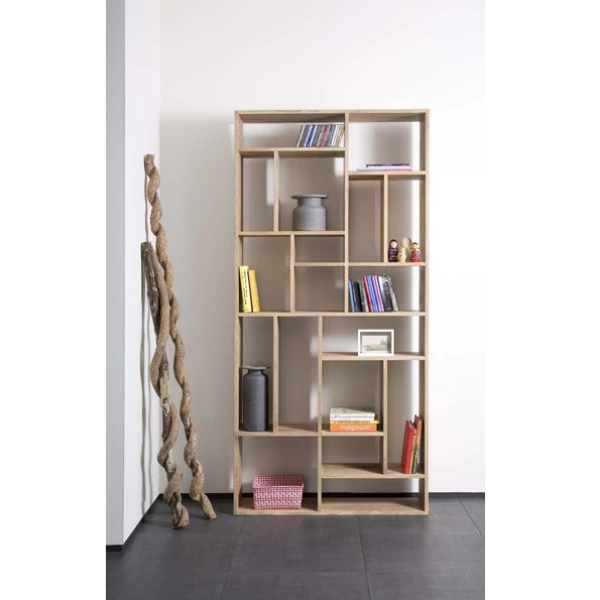 This Ethnicraft Oak M Rack is designed by Alain van Havre, who took his inspiration from the Dutch painter, Piet Mondriaan. Its crafted from a Solid European Oak featuring vertical and horizontal lines that intertwine to create a unique grid combination. Great as a bookshelf or as a room divider.