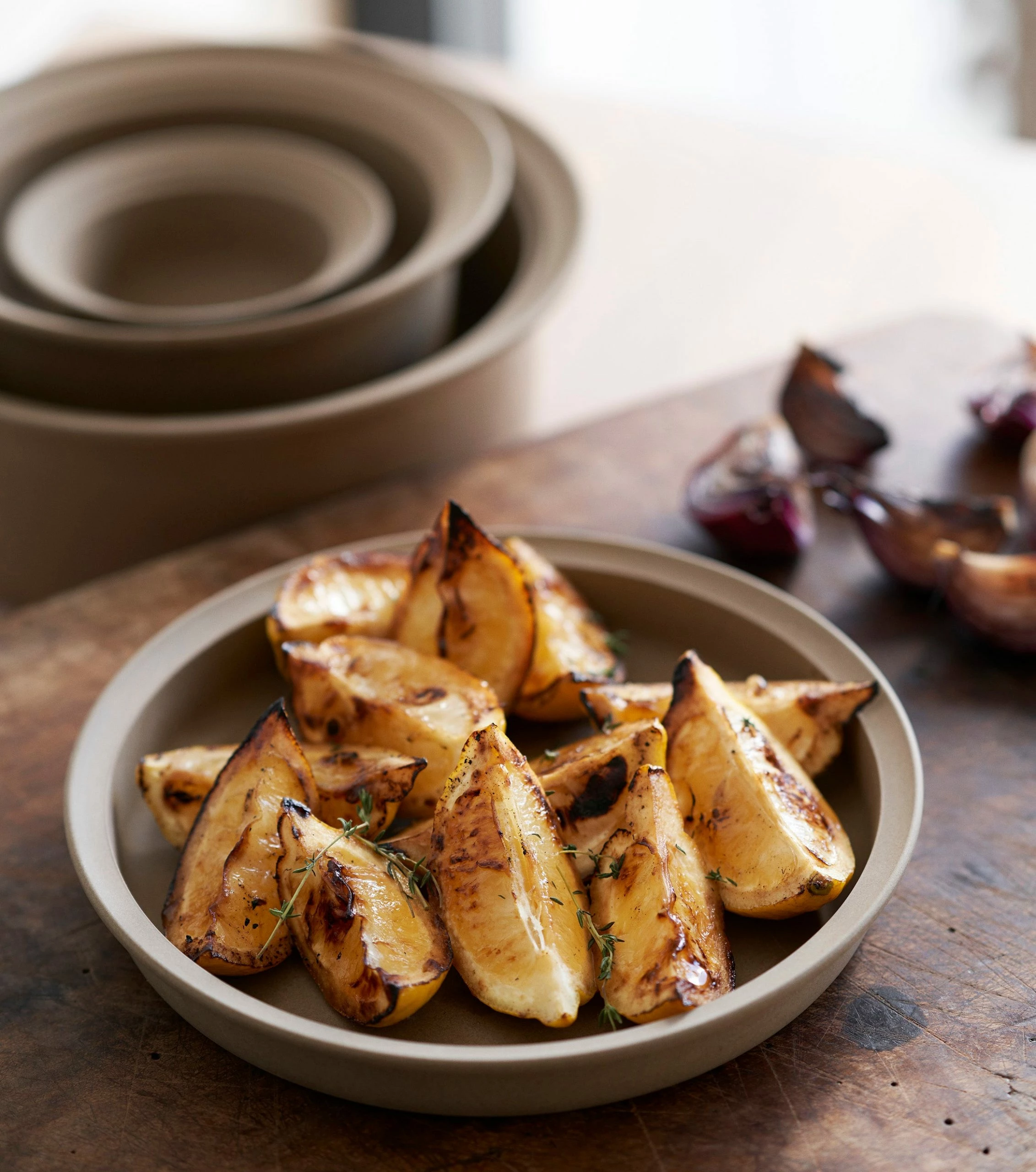 Designed by Grethe Meyer in 1976, Ildpot warms and darkens with age. Almost like a love that grows stronger each year. The sturdy ceramic pieces can be taken from the freezer, put directly into the oven and then onto the dinner table.