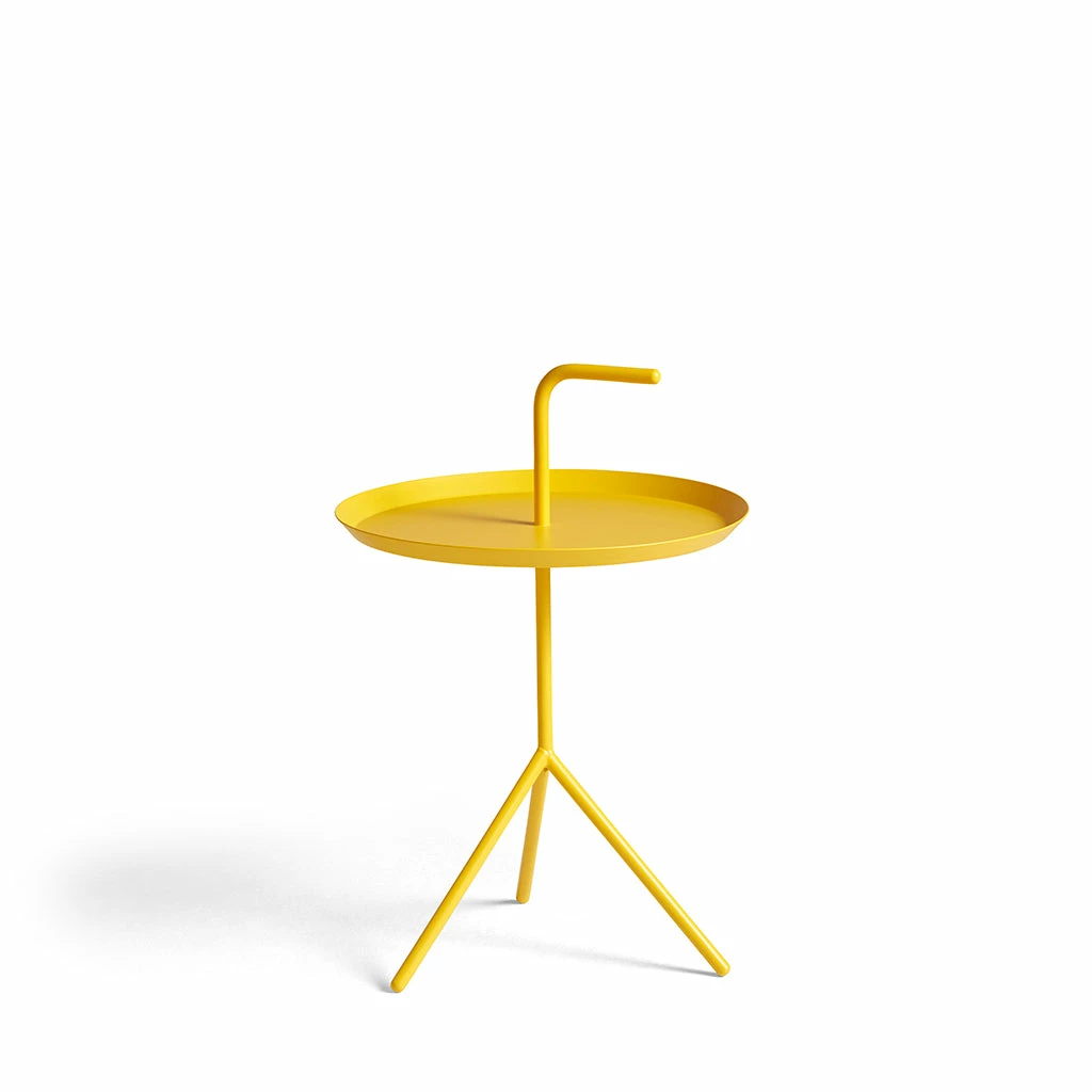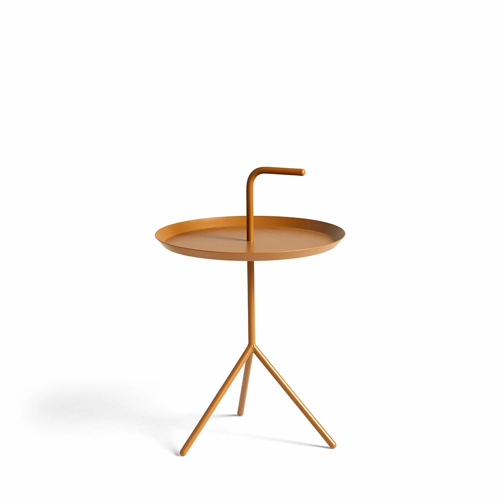 Don’t Leave Me is the full name that indicates the function of this metal side table, which allows you to move the table with you. DLM, as the abbreviation goes, embraces this function, as the handle is part of the table frame and thus minimizes the basic components of the design.