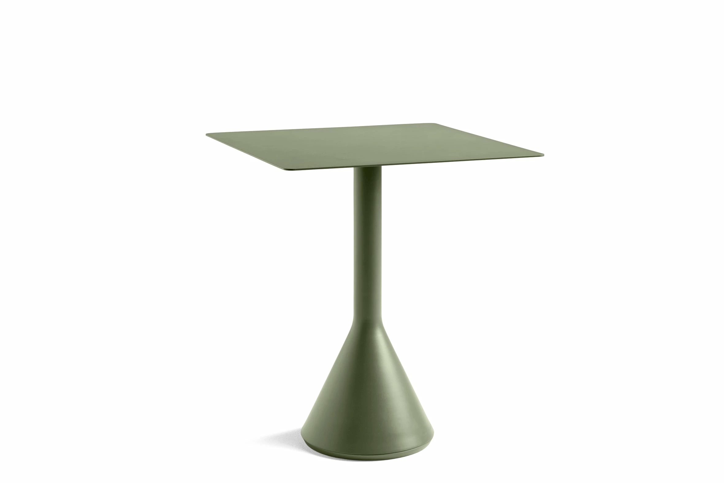 Based on the desire to develop a series of tables to complement the Palissade outdoor furniture collection, French design duo Ronan and Erwan Bouroullec teamed up with HAY to create the Cone Table. The solid base and ultra-thin steel tabletop share the same graphic design language as the rest of the Palissade series, enabling the table to be strong and elegant without fragility. The series comprises of various sizes with round and square tabletops; all featuring a stabilising concrete base. Specifically designed for outdoor use, the powder-coated steel has a protective outdoor primer for optimal durability and resilience. The collection is available in two different colours and is ideal for terraces, balconies, gardens, cafés and public spaces.