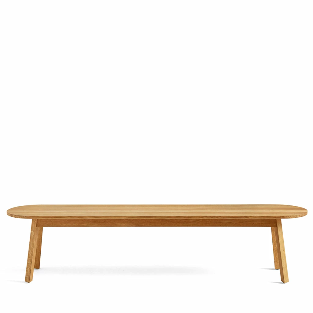 Motivated by the desire to create more space around a circular table, Simon Jones designed the Triangle leg table and bench series. The rectangular ends of the tabletop and bench have been rounded, creating a sociable setting that maximises seating numbers around the table. Crafted in solid oak with an oiled, soaped or clear lacquer finish, this versatile series is suitable for a wide range of private and public dining or office environments.
