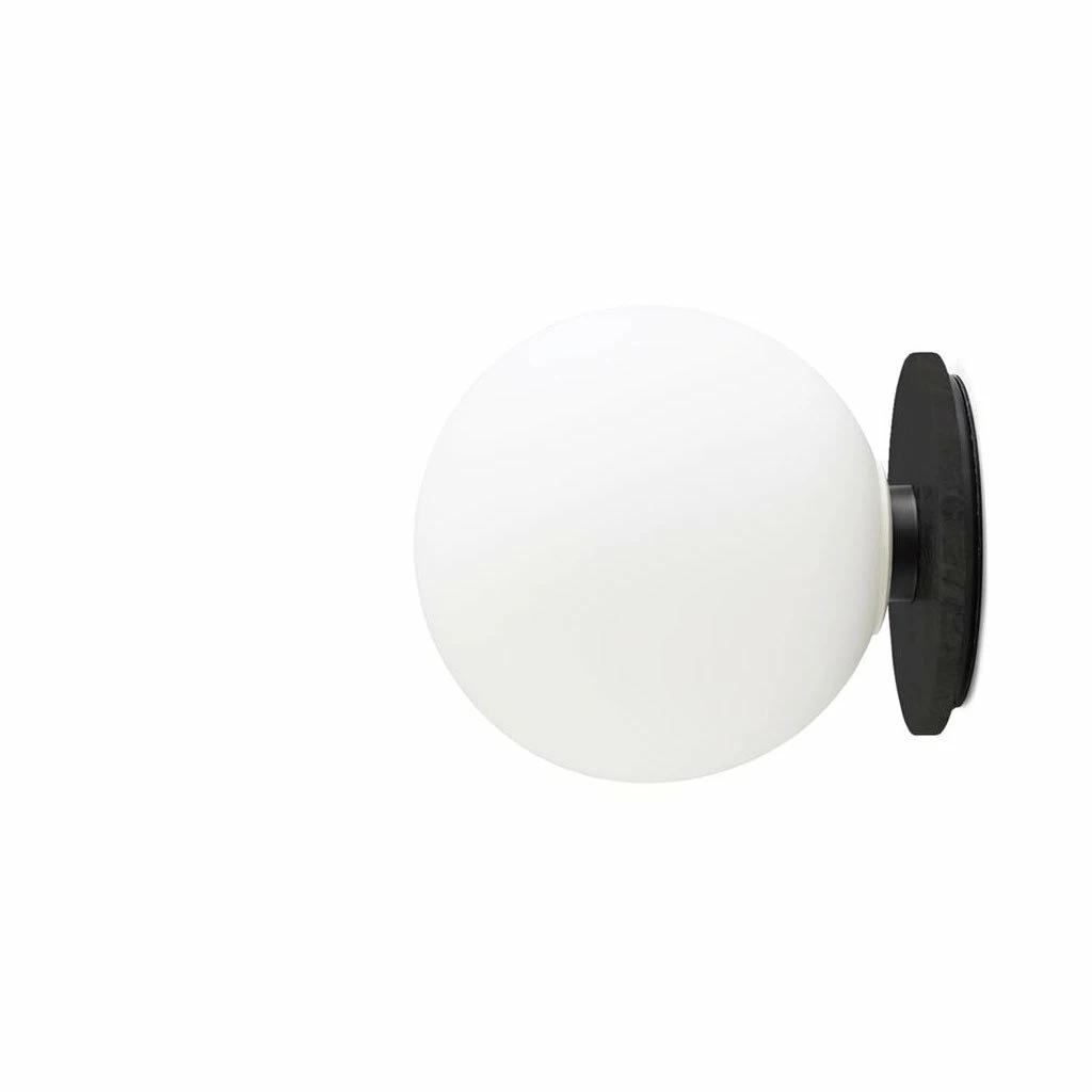 The dimmable LED bulb, with its elegant, spherical form hides the lamp fitting, while the opal glass diffuser creates an even, harmonious glow, preventing glare. The accessories in the series are likewise driven by the need for portability – so the wall bracket can either be wired in, or hung from a nail like a picture, with a cable plugged into a wall socket.