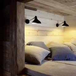 N°216 is can be fixed on a wall – perfect besides a bed, very elegant with its simple elbow, it can also turn on itself up to 180°